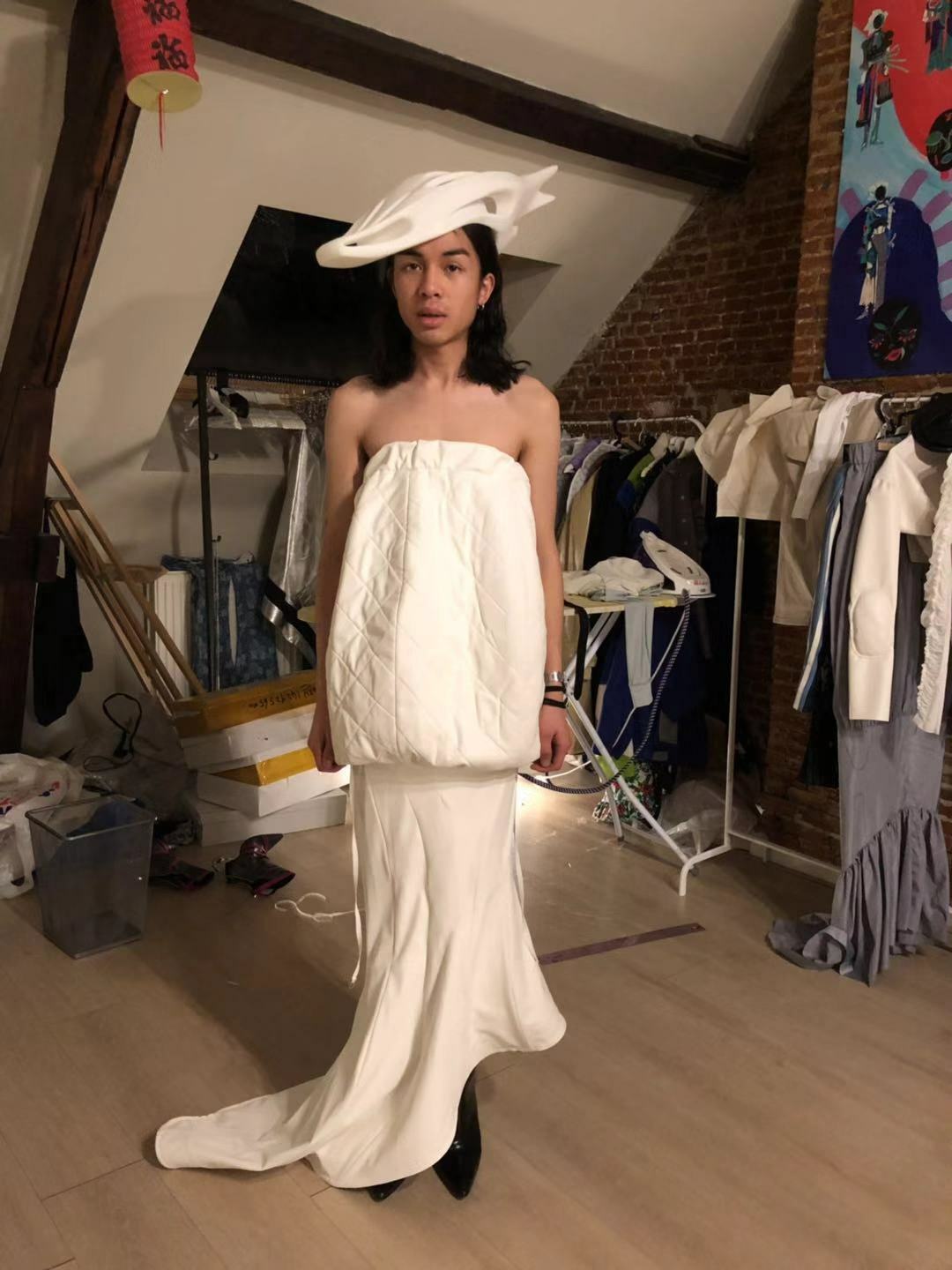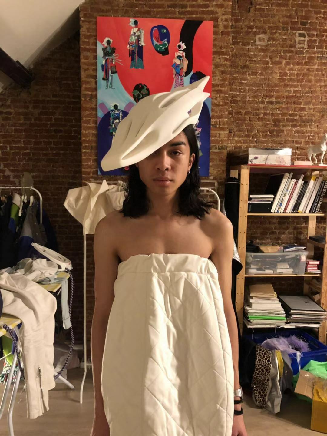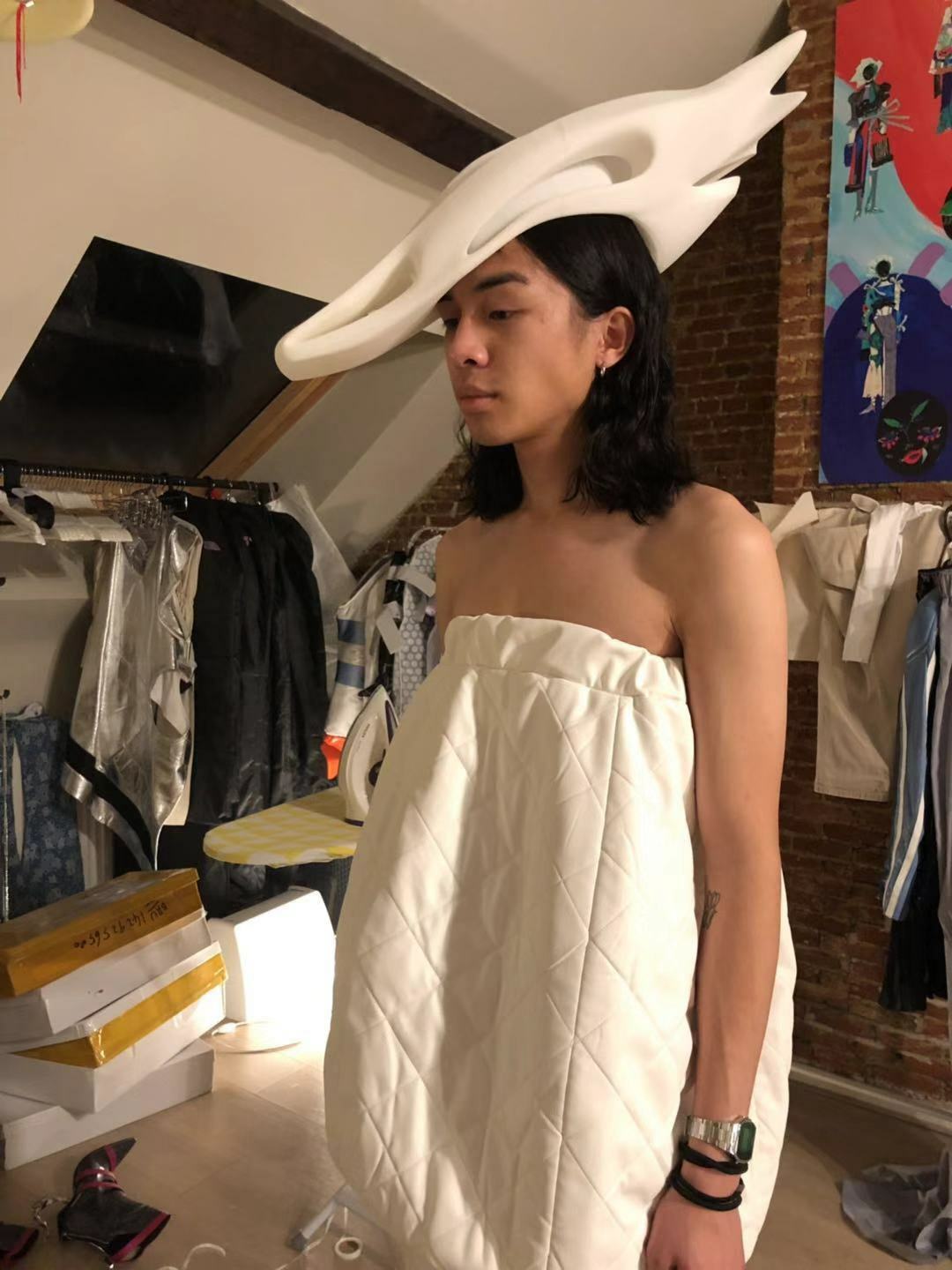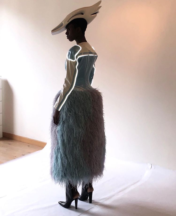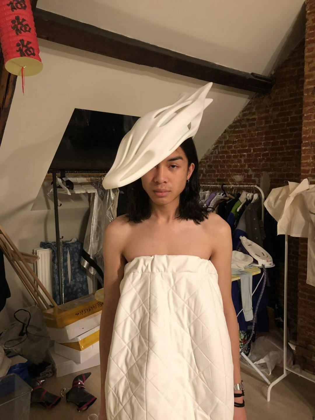 This helmet-hat is a collaboration project with a Chinese fashion designer DIDU. The project was inspired by a bike helmet but had to have a much more strange and exaggerated aesthetics where architecture, fashion and art are fused. The helmet was 3D printed from a digital 3D file in nylon and polished and coated manually. This is one of the fashion projects where we exploring digital fabrication methods to create a design that is close to our body and skin.