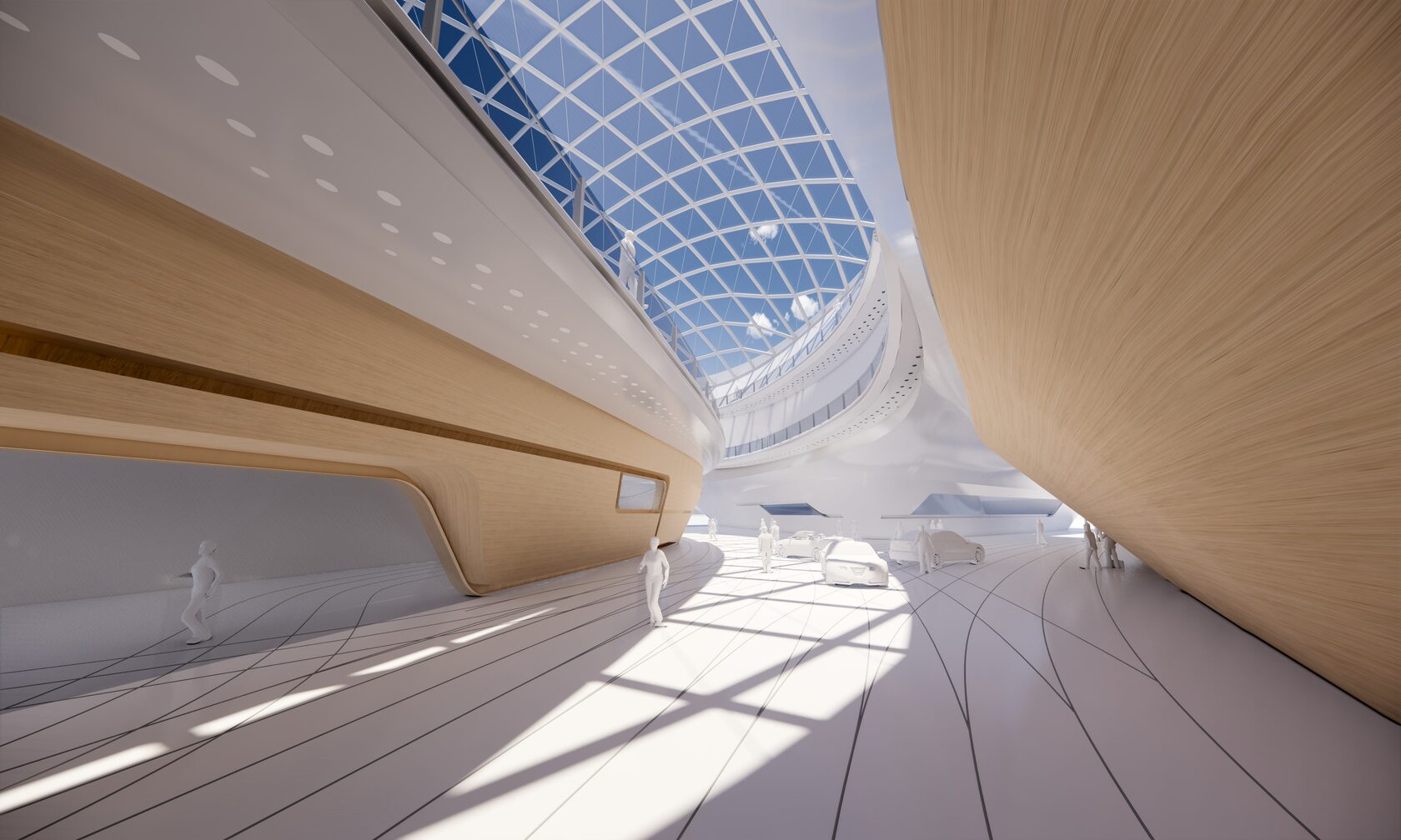 Established in 1841, Sberbank is the market leader of the Russian banking and economic circulatory system. At the forefront of process innovations and social responsibility, over 70% of The concept of Infinity is inspired by the mathematical model of Lorenz attractor loop. The Lorenz system is a system of ordinary differential equations (the Lorenz equations, note it is not Lorentz) first studied by Edward Lorenz. It is notable for having chaotic solutions for certain parameter values and initial conditions. In particular, the Lorenz attractor is a set of chaotic solutions of the Lorenz system which, when plotted, resemble a butterfly or figure eight. The dual nature of Lorenz attractor shape was taken as a conceptual model for the internal organisation, and as a circulation model of the Experience Centre. The building is divided into 2 volumes merged together in the middle. The lower volume is more spread out and has a visitors area of the building where most public functions for visitors are located such as showroom, customer area, restaurant, youth centre, car owners club, etc. The taller volume is dedicated to staff functions such as office, staff club, canteen, etc.