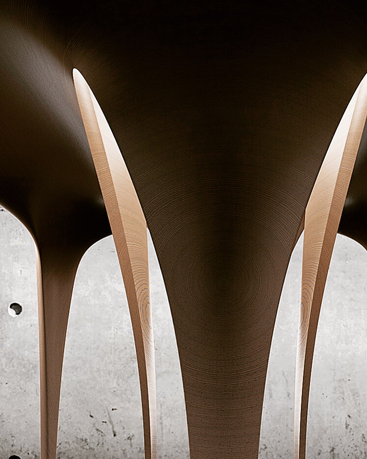 木制家具系列FLOW的设计理念基于结构的流动性和结构力,它起源于建筑。