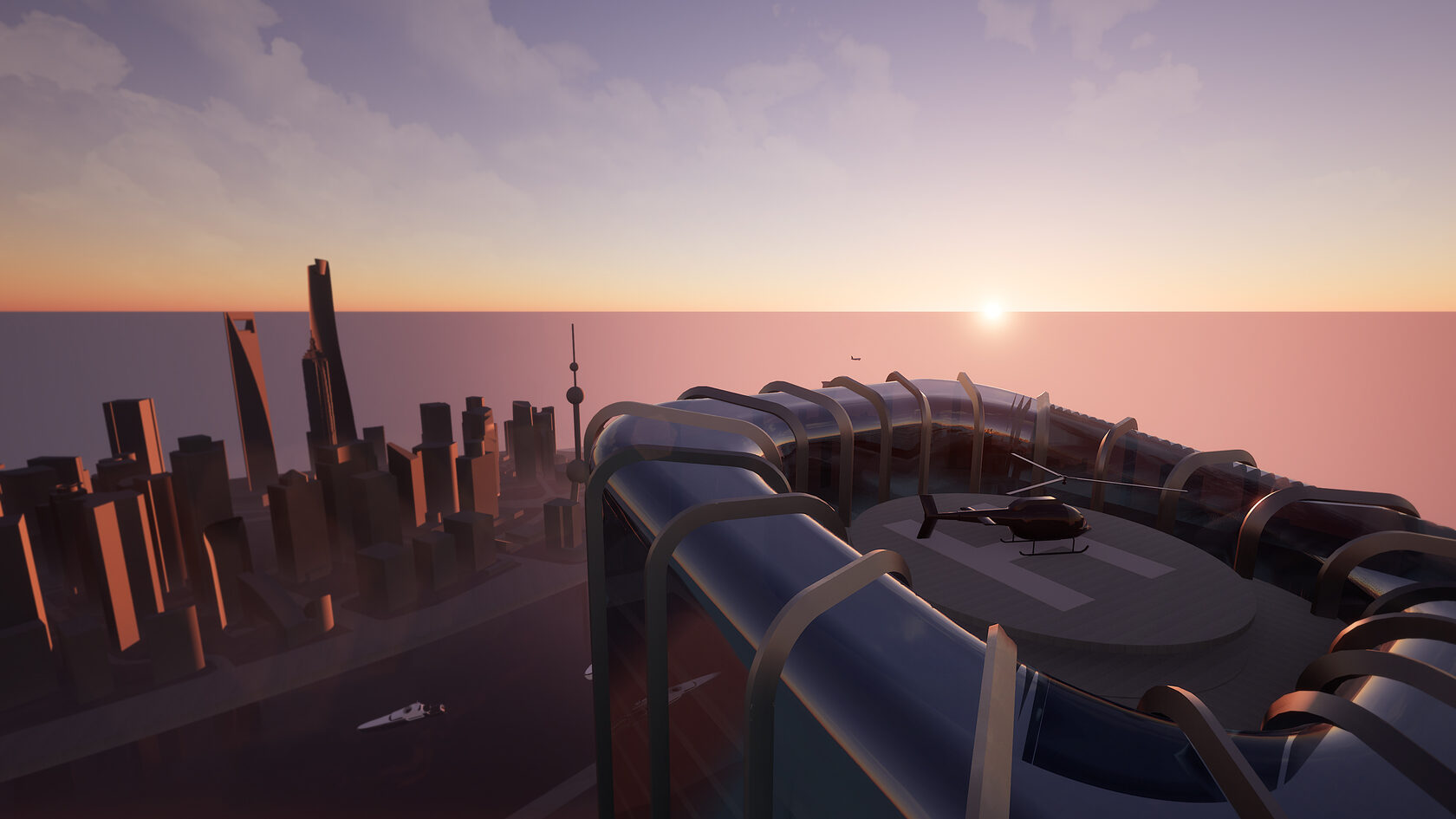 The crown of the tower is one of important parts of this building. It creates a magnificent view over the city, and in particular the Pudong area, from an observation deck. The roof has a helipad which is surrounded by curved inwards facade frame creating a dramatic ending on the top of the tower.