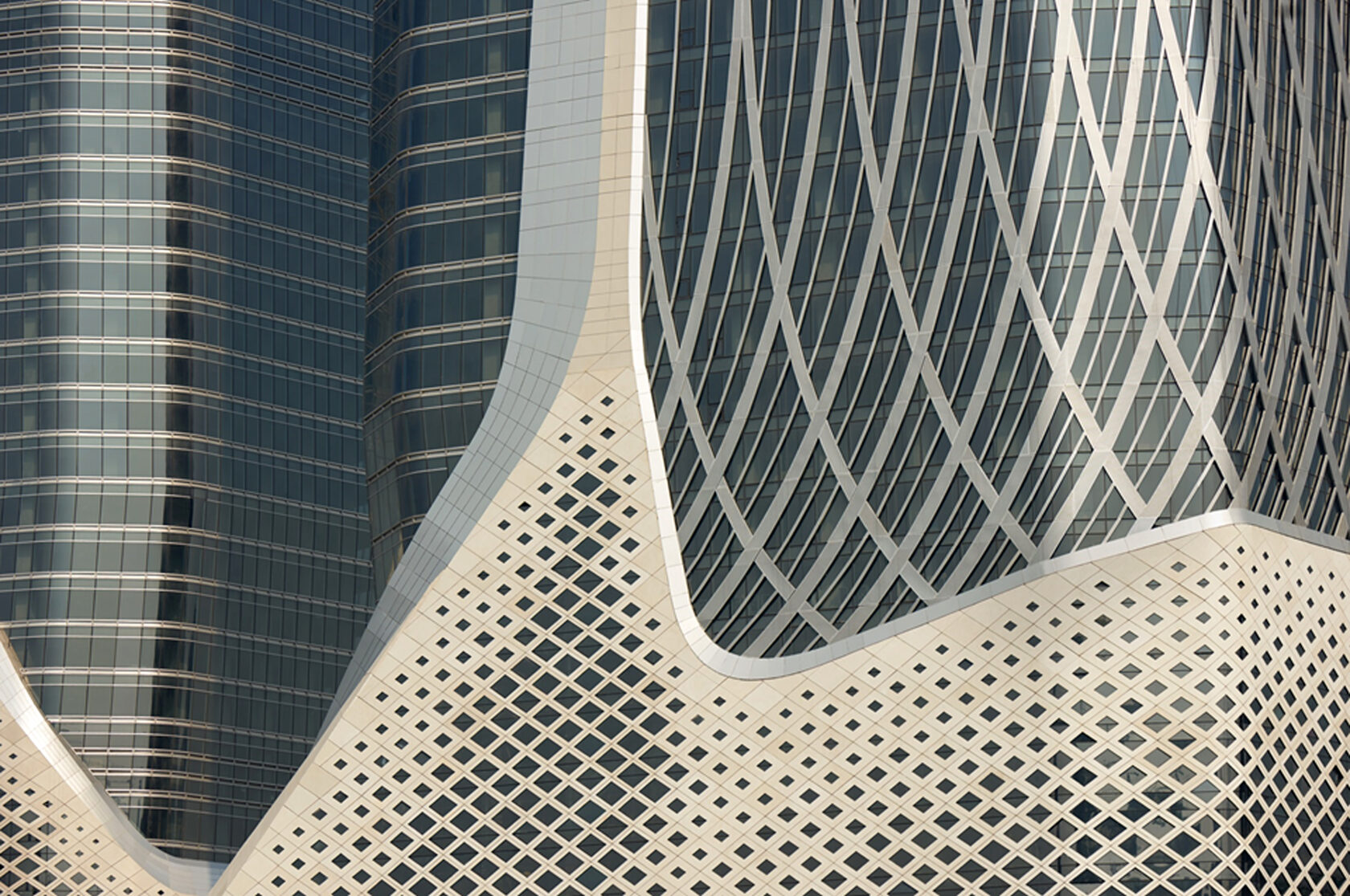 The tapering profiles of the towers,at 255m and 315m Zaha Hadid Architects' tallest completed towers to date,extend the viewer's sense of perspective. The towers' trapezoidal floor plans maximise their river- facing frontages and double-decked elevators increase the efficiency of their core area planning by fifty per cent. The cross-sectional geometry of the towers ensures an average net to gross ratio of over 70 per cent.