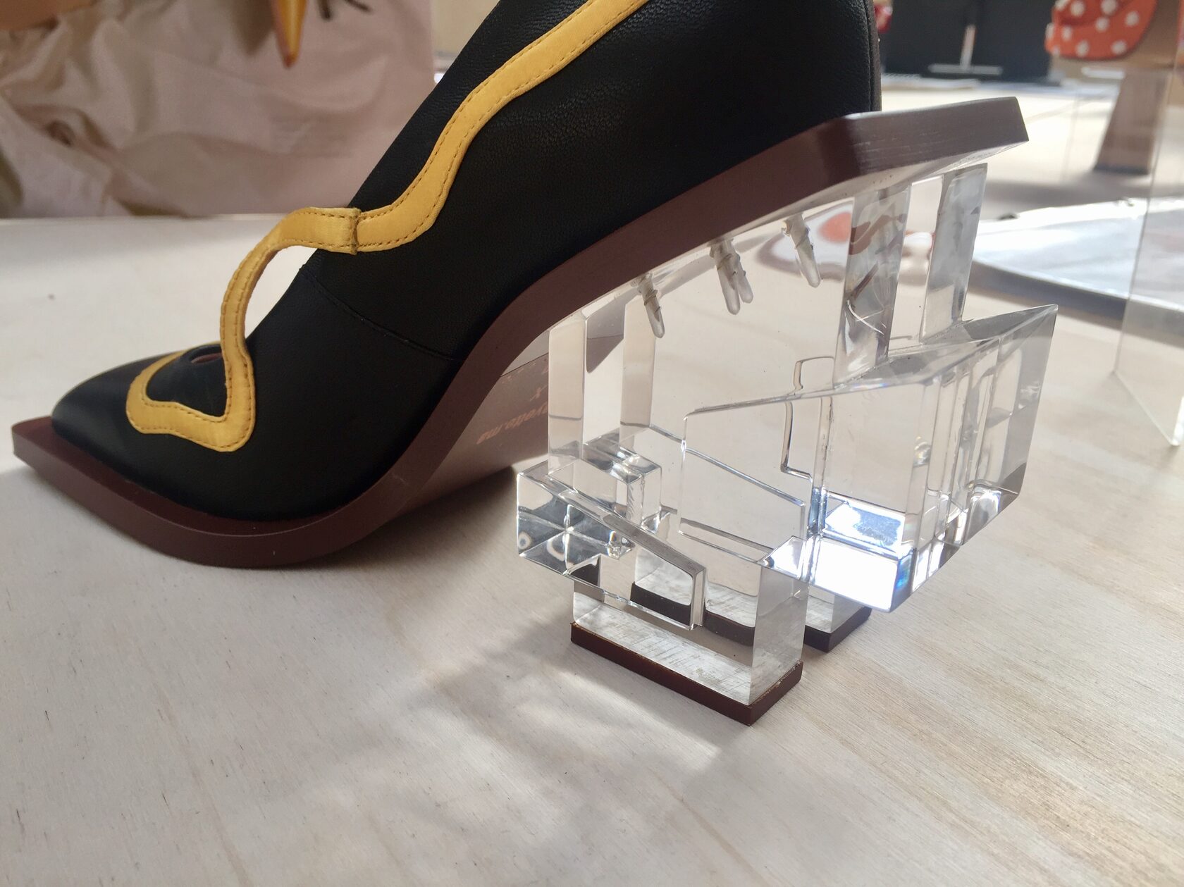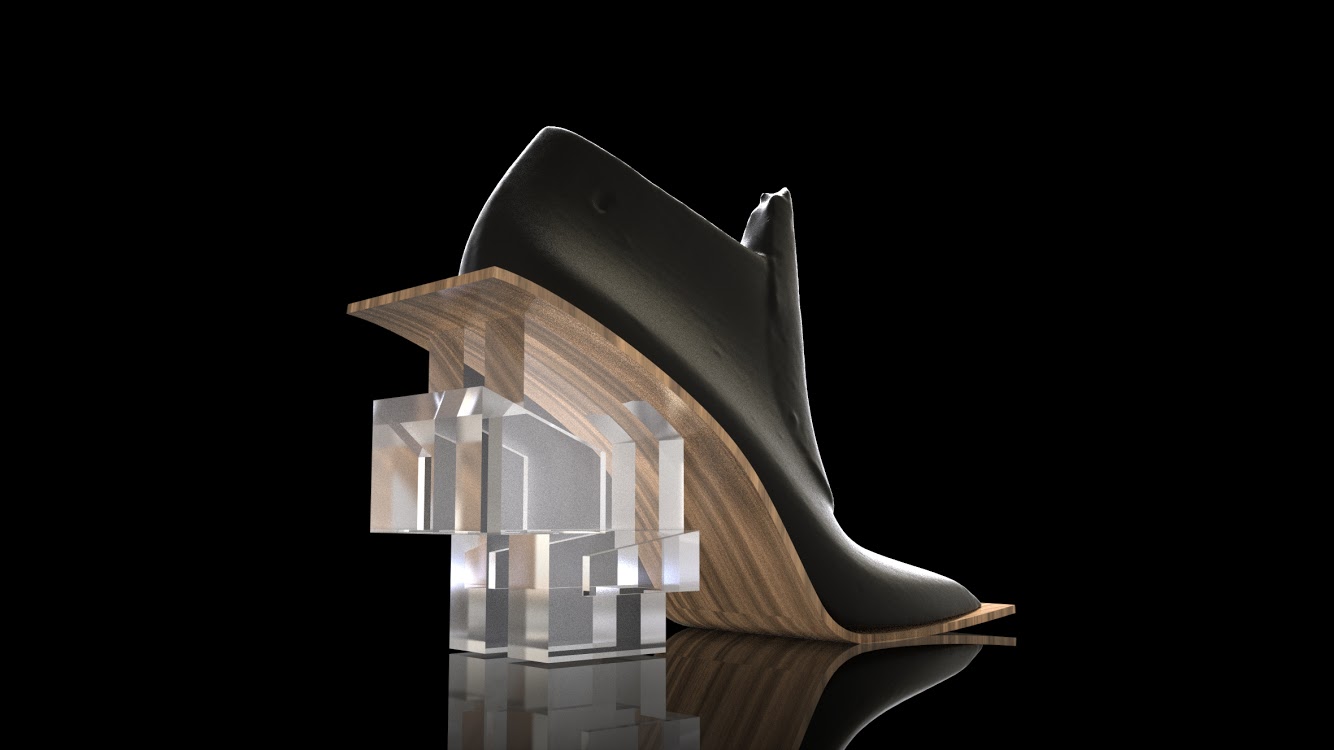The final outcome was produced in a variety of digital fabrication techniques and materials. Some of the heels were produced using CNC-milling of transparent acrylic blocks and wooden blocks. Other heels were using 3D printing technique for its prototyping as well as production.