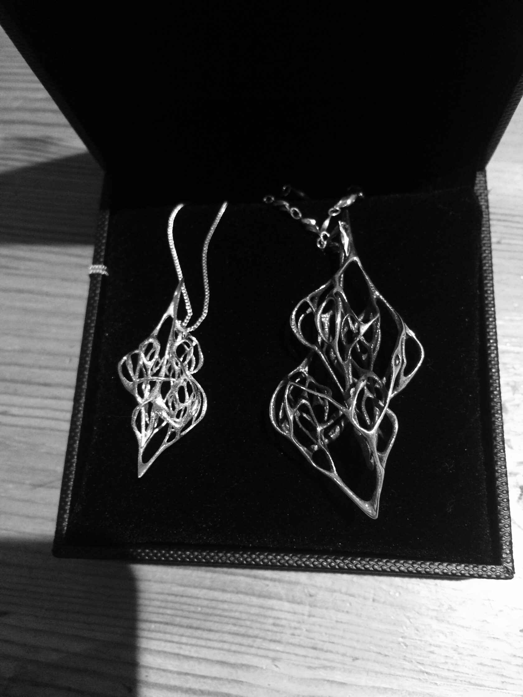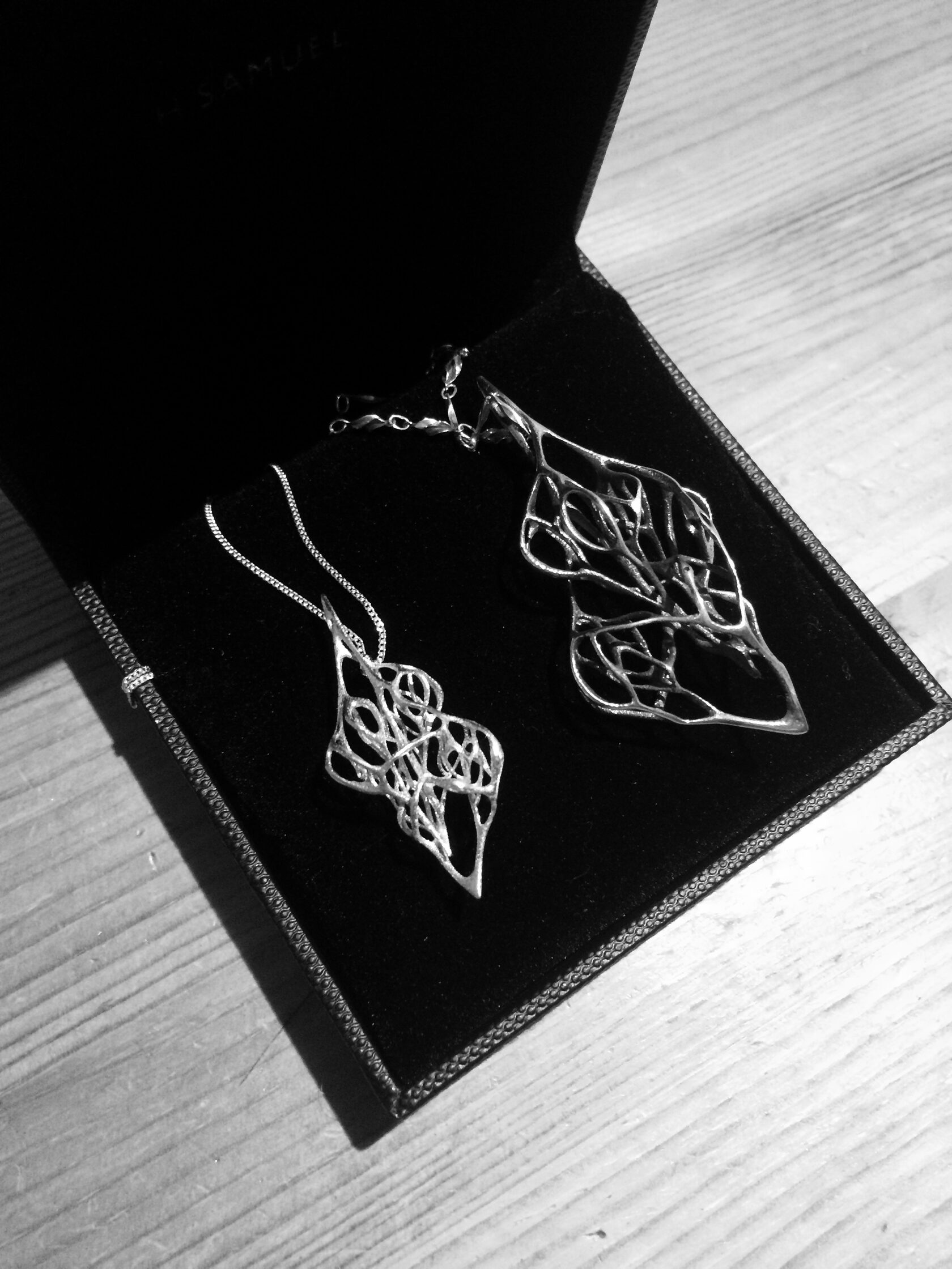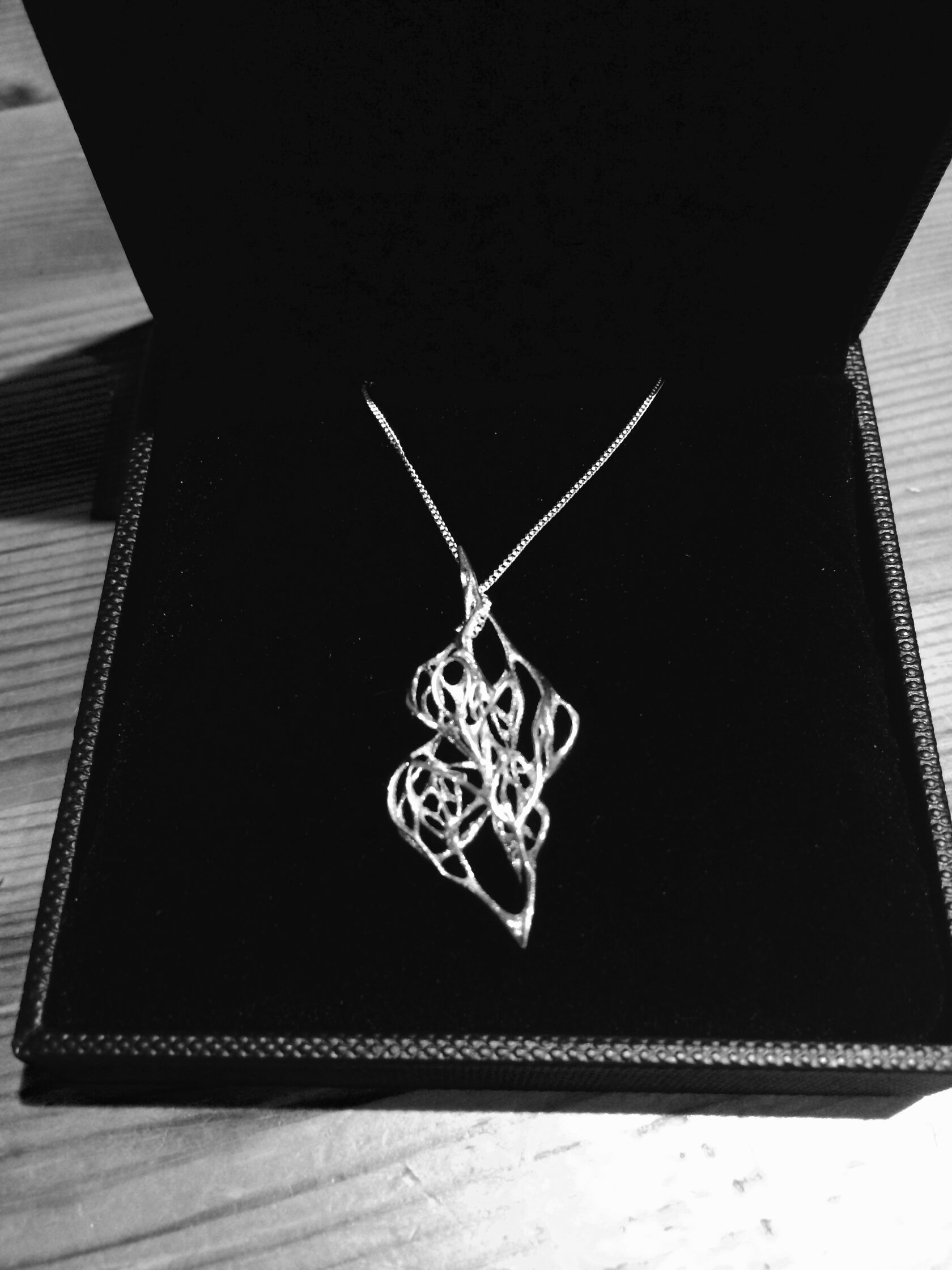 The necklace was designed using a generative tool such as Processing. By programming the behaviour of the dynamic form through a swarm algorithm and changing parameters of the Processing code, a big variety of design options was achieved.