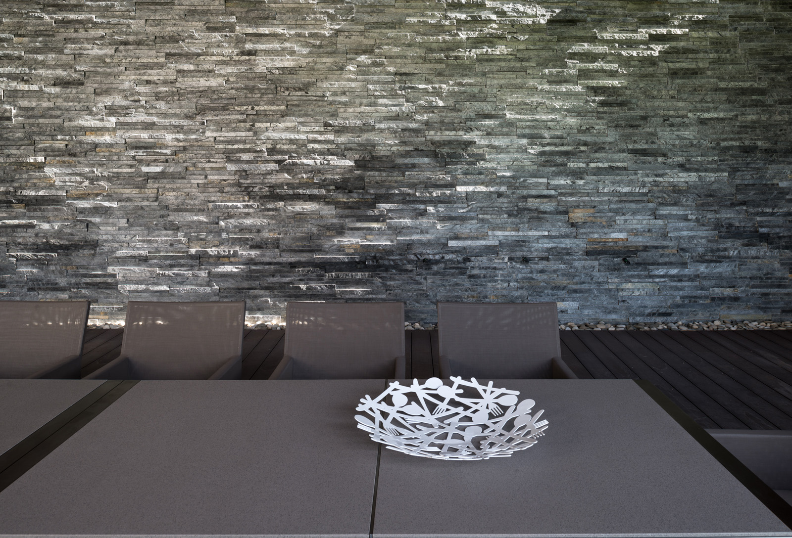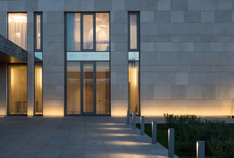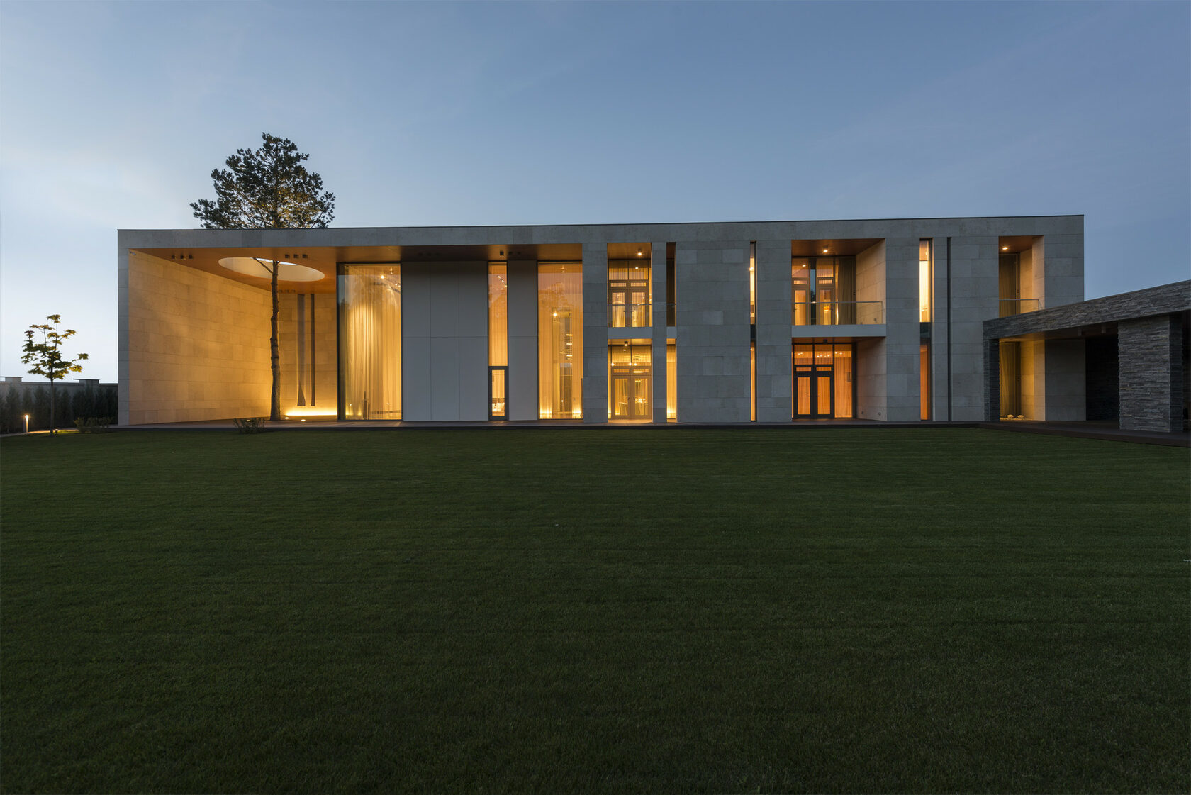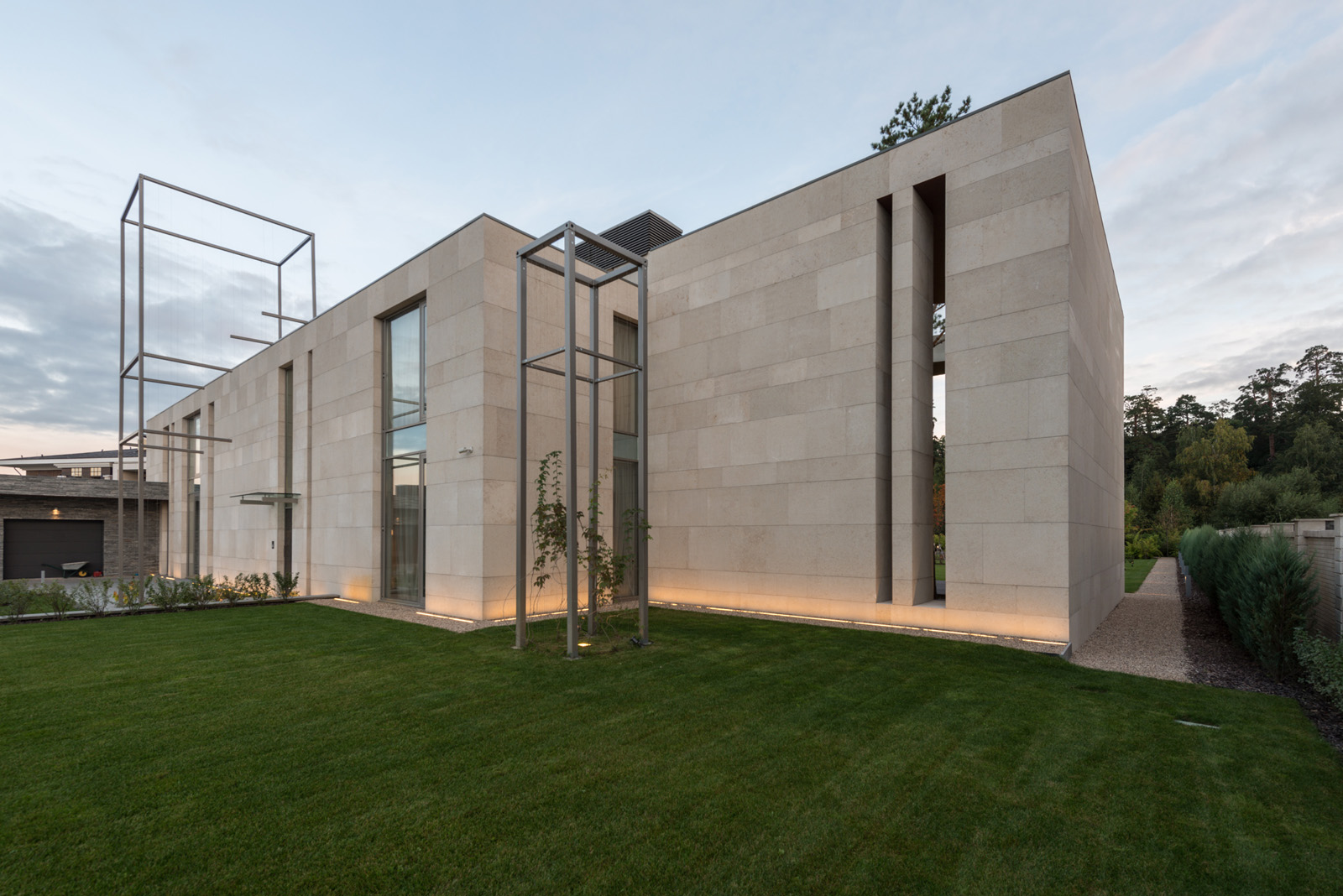 This villa has a rather large area - about 1000 square meters, and due to its dimensions, as well as a very elongated shape and natural stone cladding, it seems really impressive.