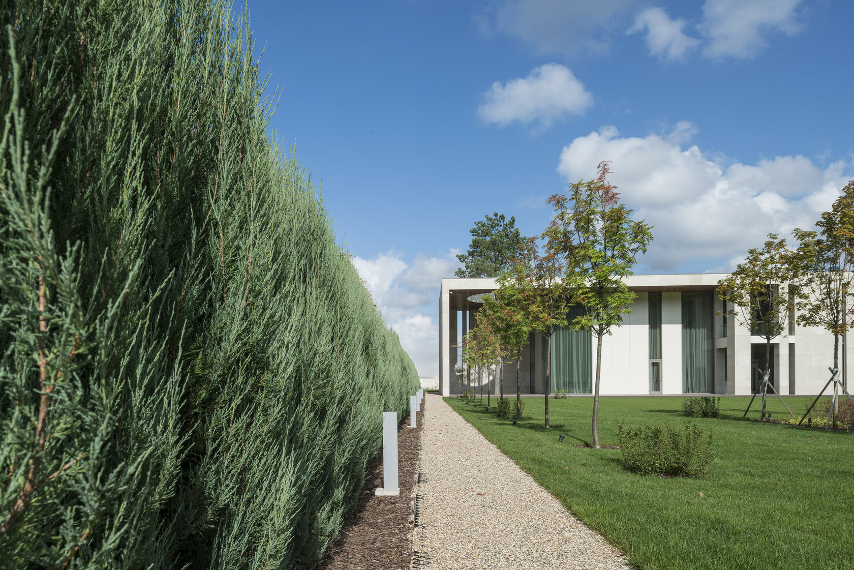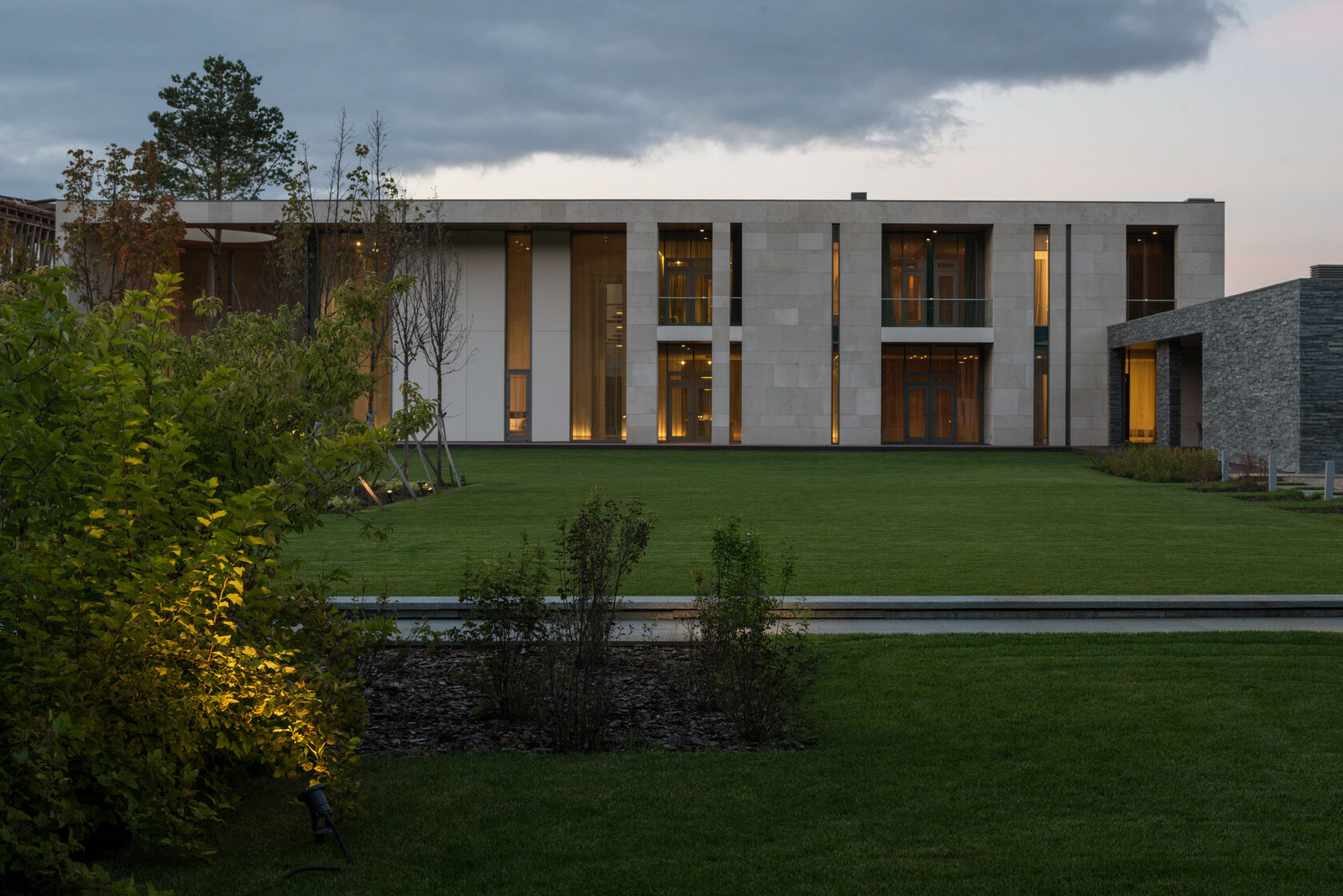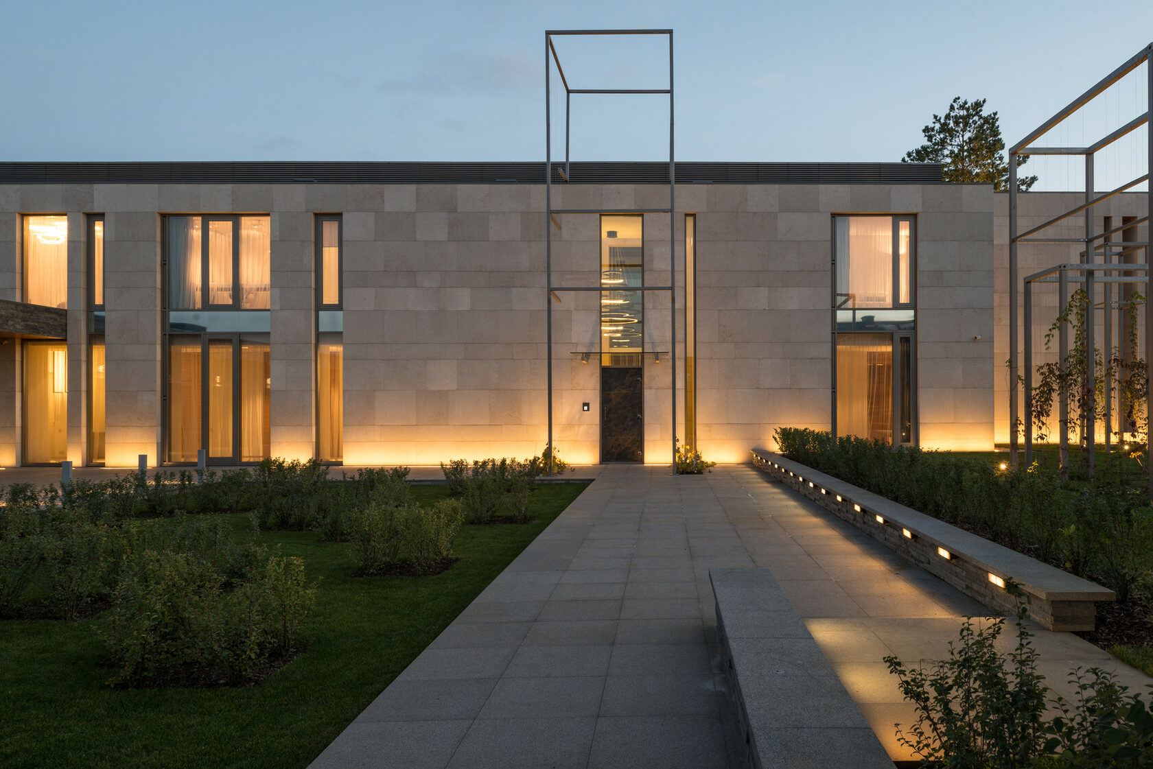 The rooms that are more private face the entrance. Panoramic windows of the living room, dining room and bedroom are facing the courtyard. The main open veranda of the house is located on the same side.