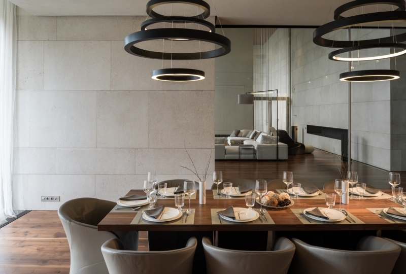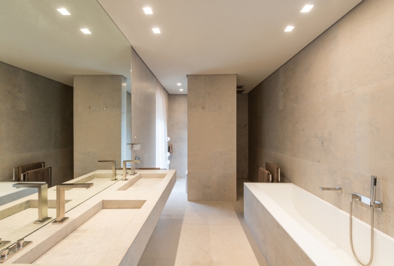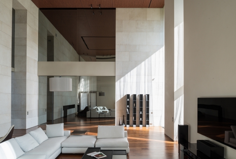 This villa has a rather large area - about 1000 square meters, and due to its dimensions, as well as a very elongated shape and natural stone cladding, it seems really impressive.