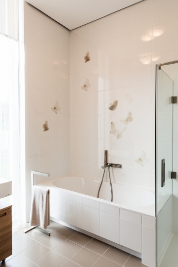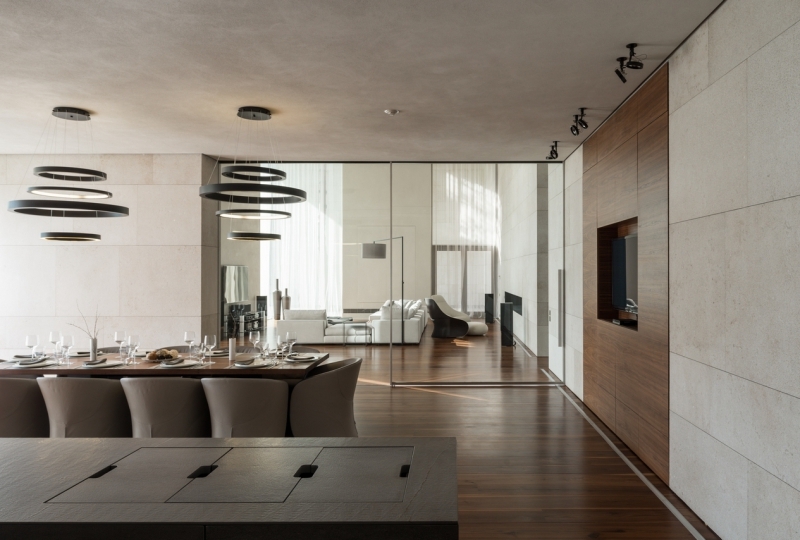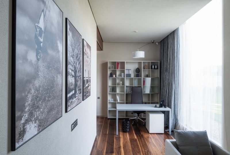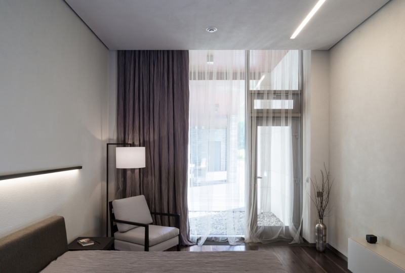 The rooms that are more private face the entrance. Panoramic windows of the living room, dining room and bedroom are facing the courtyard. The main open veranda of the house is located on the same side.