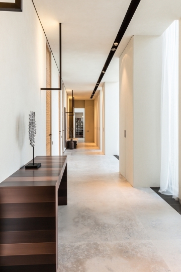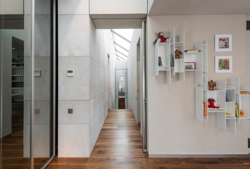 The site had neither a pronounced relief, nor any special vegetation, and was perfectly visible. And since the option of building a tall fence was not even discussed, the house itself had to act as a screen. This explains its strongly elongated shape - the house was located across the site, and exactly in the middle, clearly dividing the public and private zones.