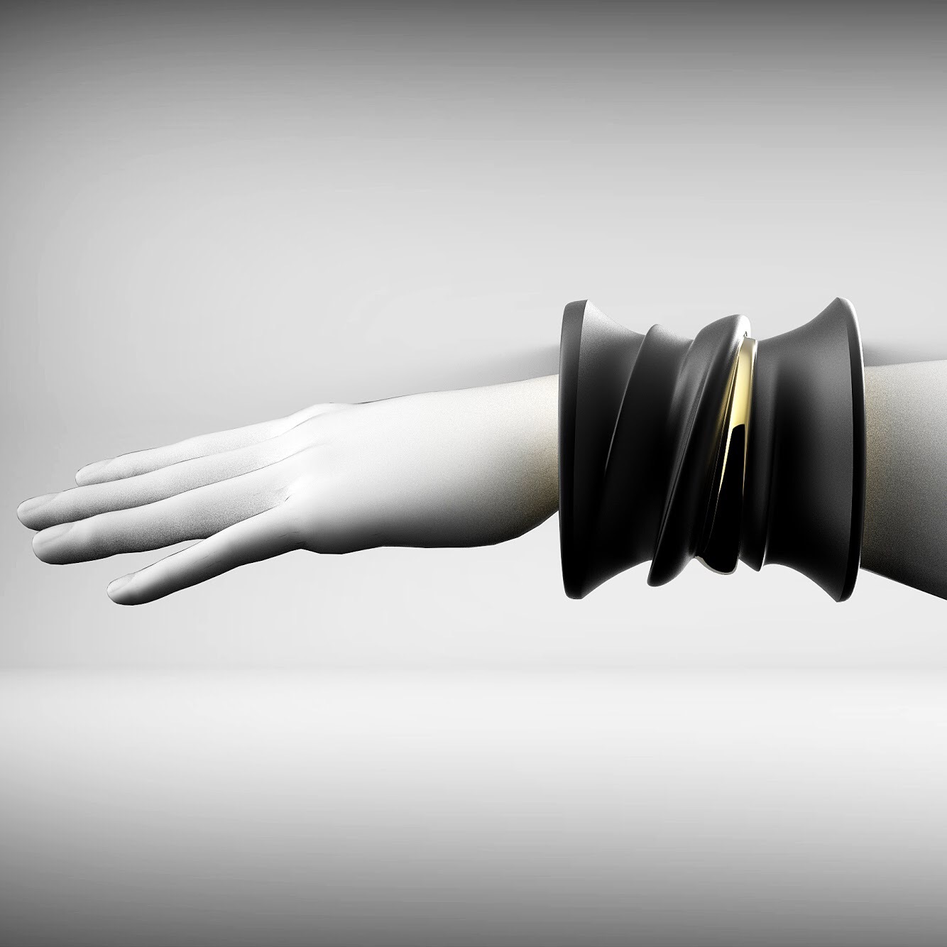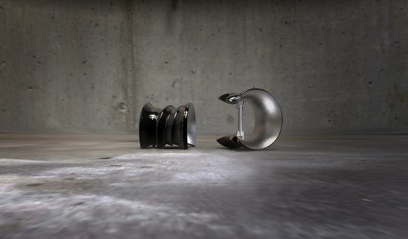 The inspiration comes from the abstract lines of modern architecture, we are especially fascinated by the contrast between the straight lines and curves, because it captures the essence of the balance between the two. We also studied the philosophy of Chinese Ying and Yang as reference to introduce fluid lines to bridge and form the jewellery, and therefore achieve the harmony shape.
