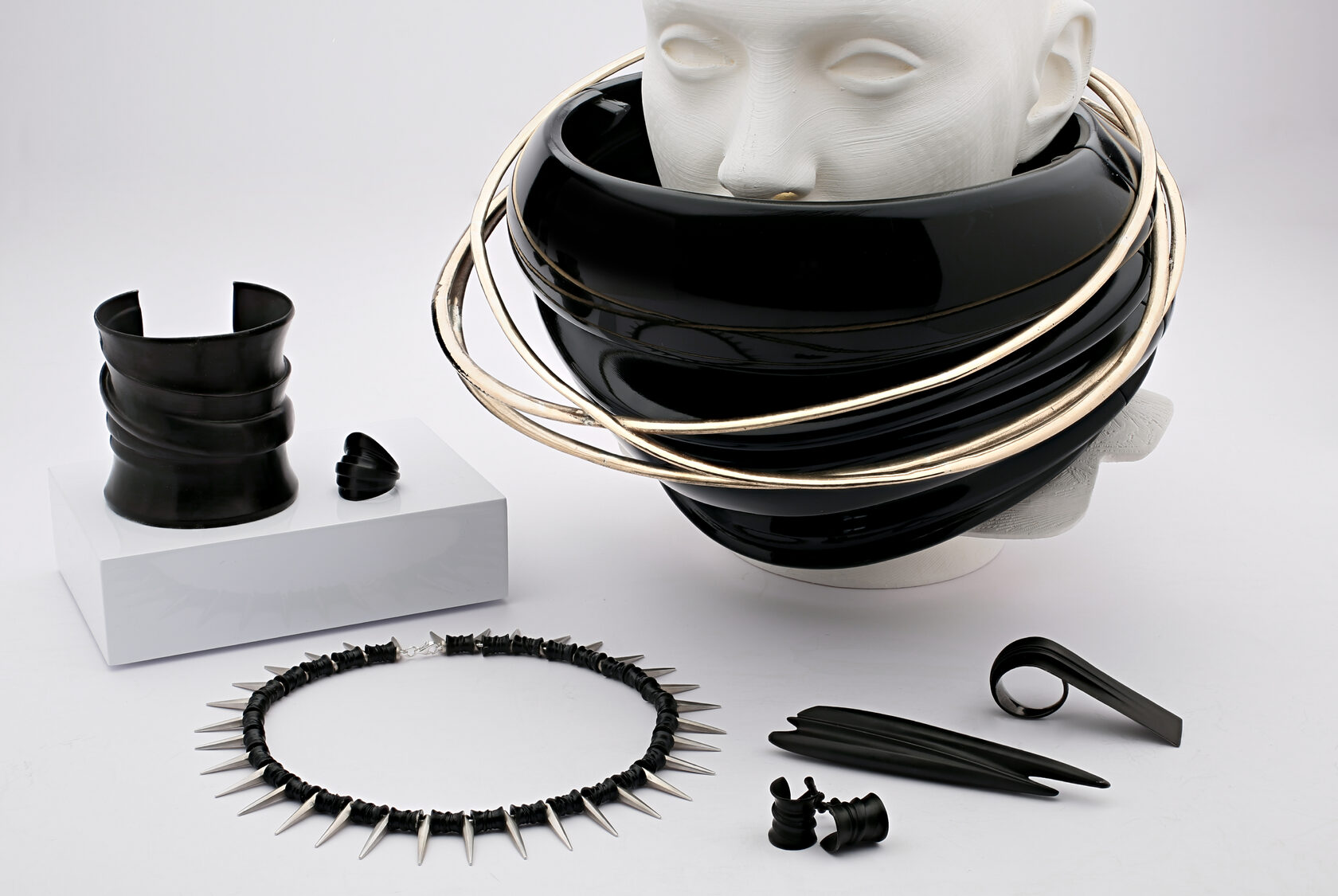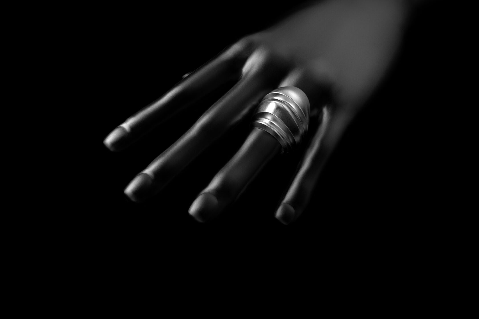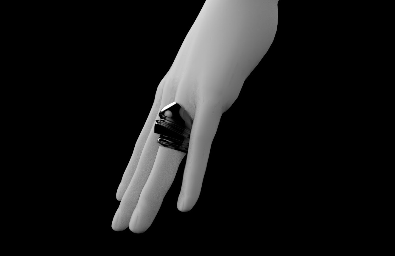 The form of the jewellery pieces celebrate individual identity and modern sense of art and design. The variety of the collection (includes: Mask, Ring, Long Ring, Brooch and Cuff) allows the wearer to match the jewellery with their outfits accordingly.