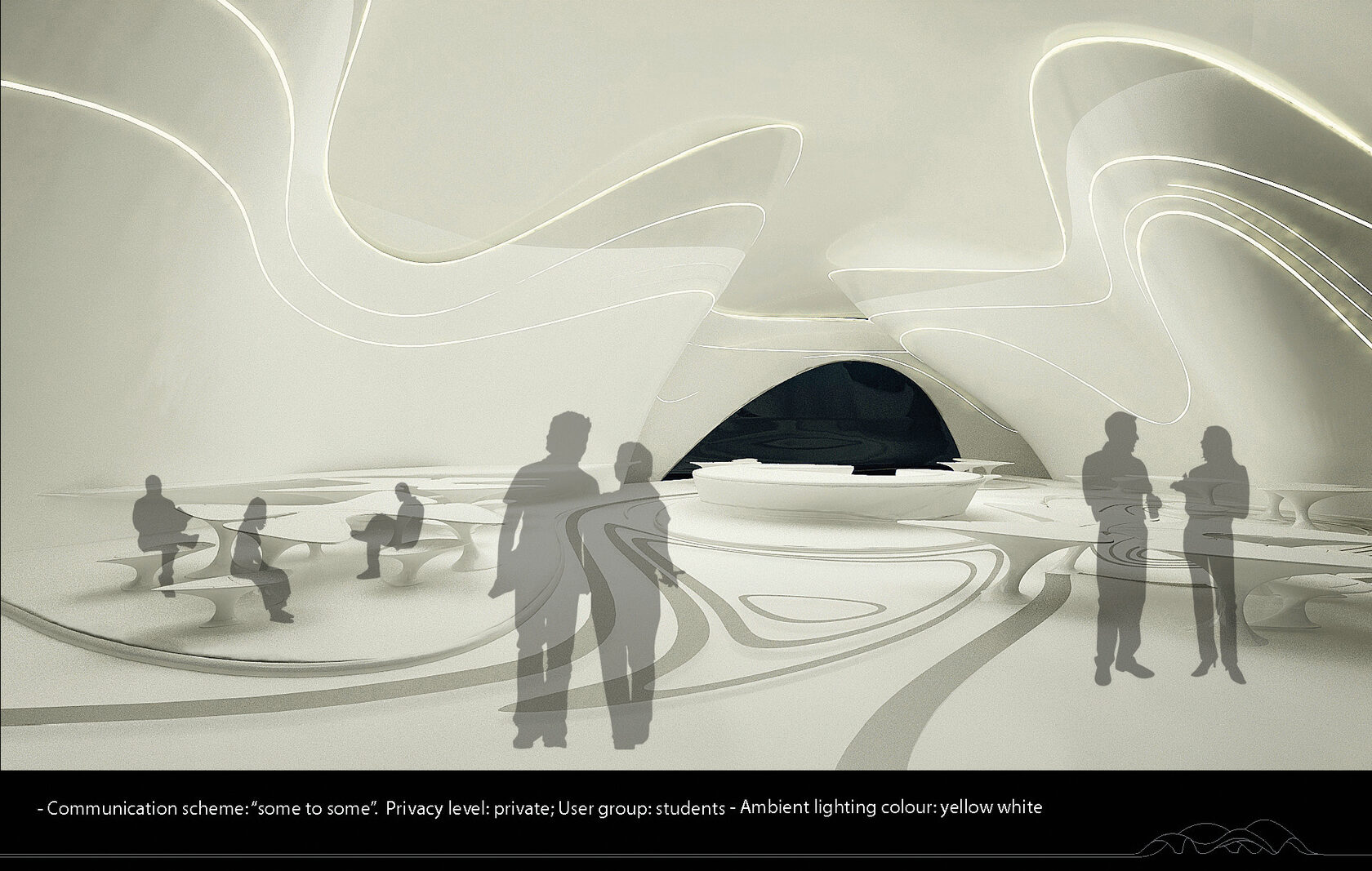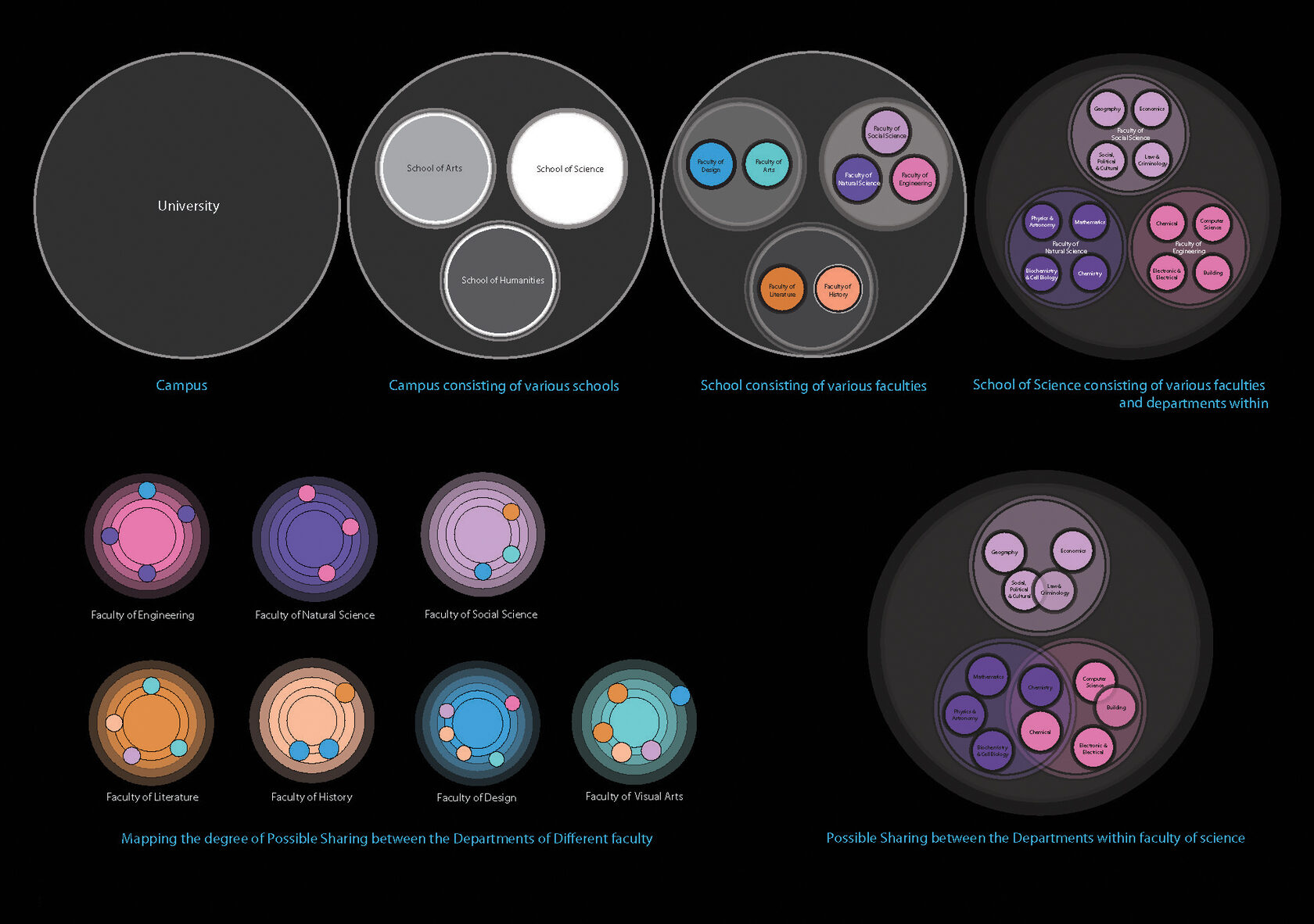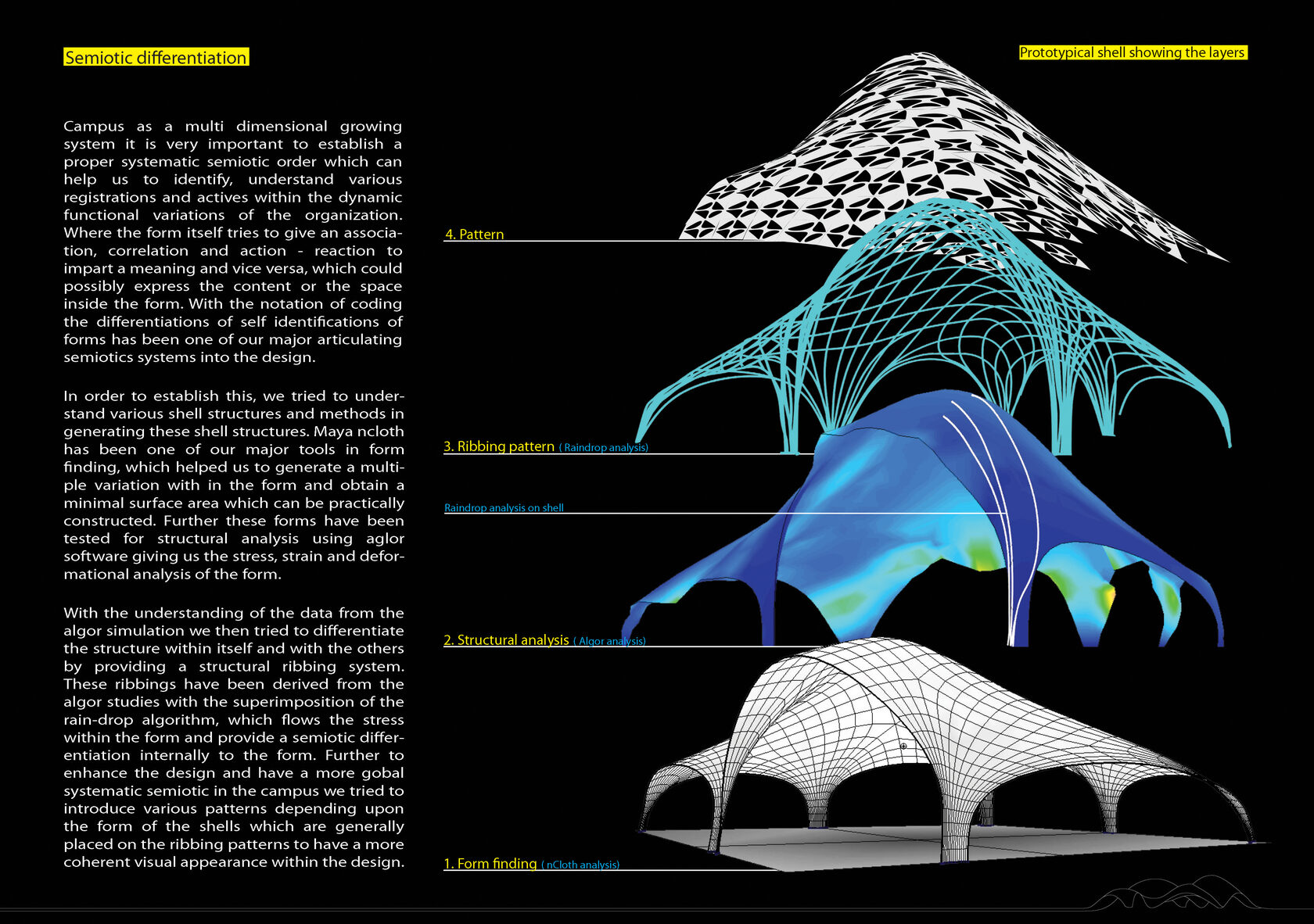 The on-going trend of sharing knowledge and information within and across different disciplines heightens the complexity of the university network, increasing the demand for creating a framework that satisfies societal functions of architecture. We have aimed to create architectural frames as communicators that define, premise and prime the communicative interactions happening within a framed territory. The qualities of fields and complex networks co-exist in a coherent relationship. This deep relationship enables articulated differentiation that can be architecturally interpreted and implemented in both tangible and intangible ways. A semiological parametric system has been developed from the global scale (master plan) to the local scale (internal space) using parametric tools such as path optimization and vector fields. Diversity of forms, applied patterns and articulation in shell geometry is the parametric signifier of the signified that gained its meaning as space from multiple layering and inscription of information. Through the ordering and categorizing of these fragmented semiotic sub-systems the complete semiotic system emerges, proposing an information rich and articulated social campus design.