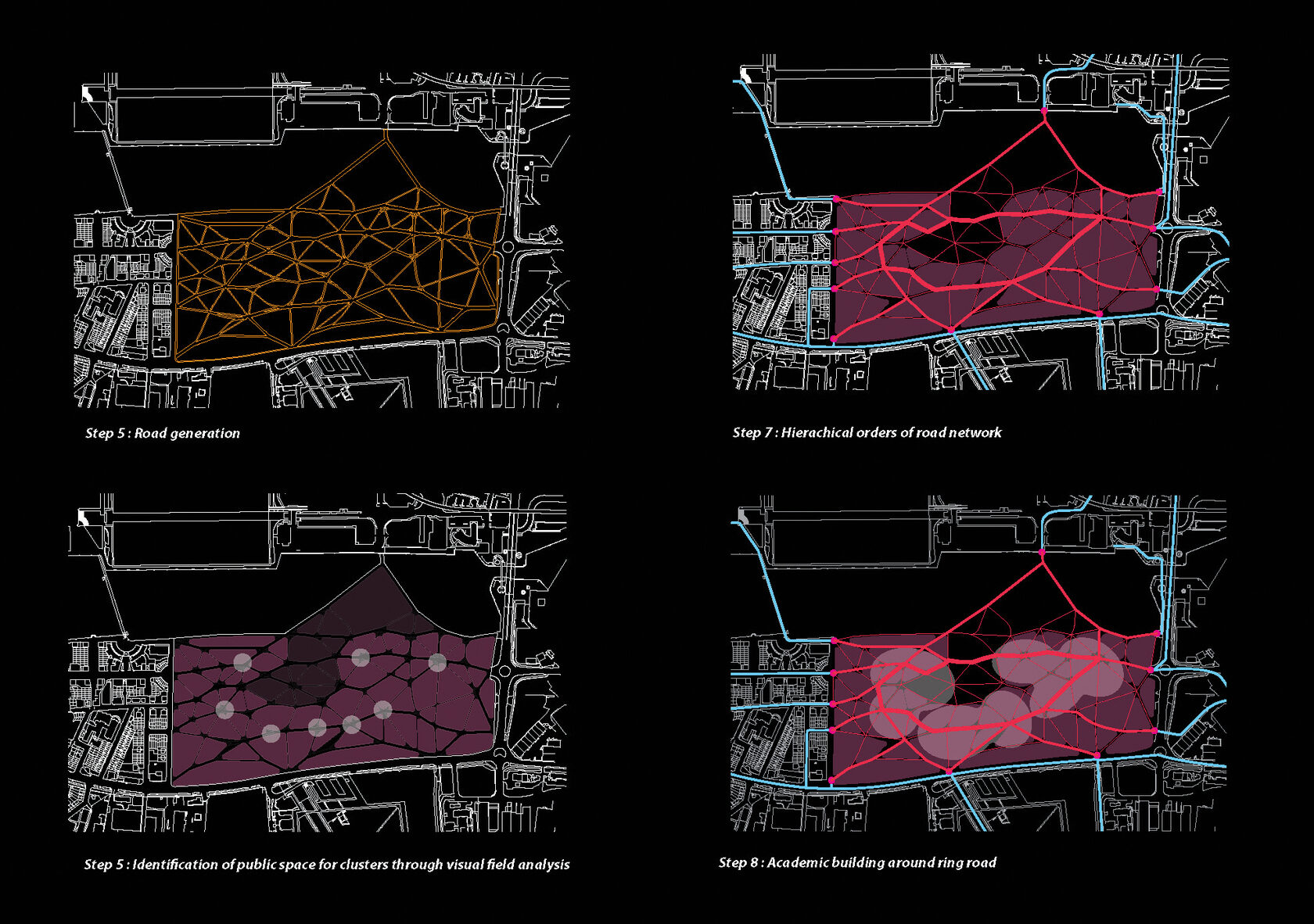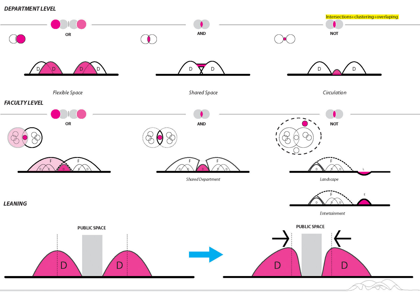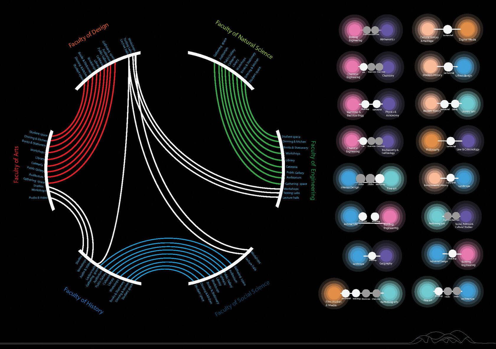 The on-going trend of sharing knowledge and information within and across different disciplines heightens the complexity of the university network, increasing the demand for creating a framework that satisfies societal functions of architecture. We have aimed to create architectural frames as communicators that define, premise and prime the communicative interactions happening within a framed territory. The qualities of fields and complex networks co-exist in a coherent relationship. This deep relationship enables articulated differentiation that can be architecturally interpreted and implemented in both tangible and intangible ways. A semiological parametric system has been developed from the global scale (master plan) to the local scale (internal space) using parametric tools such as path optimization and vector fields. Diversity of forms, applied patterns and articulation in shell geometry is the parametric signifier of the signified that gained its meaning as space from multiple layering and inscription of information. Through the ordering and categorizing of these fragmented semiotic sub-systems the complete semiotic system emerges, proposing an information rich and articulated social campus design.