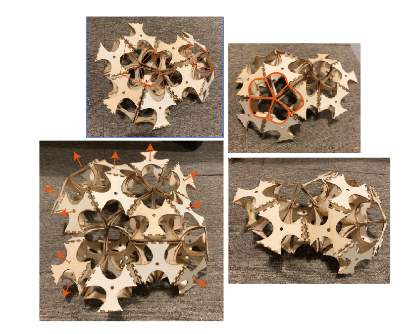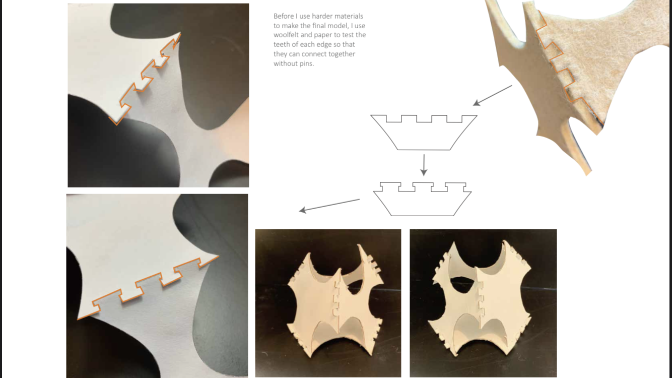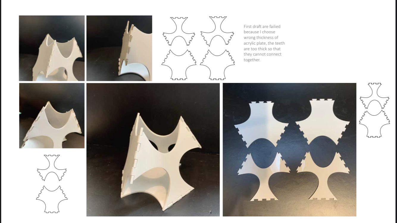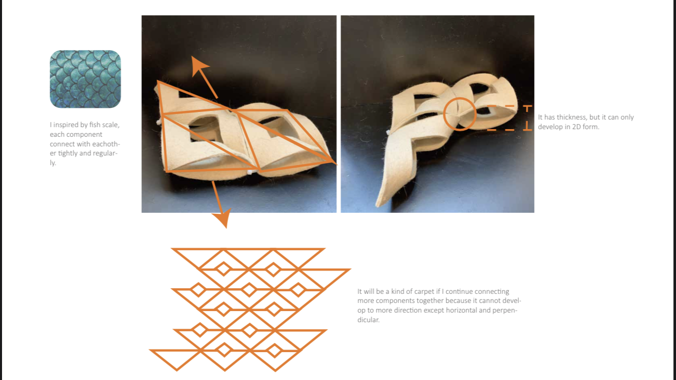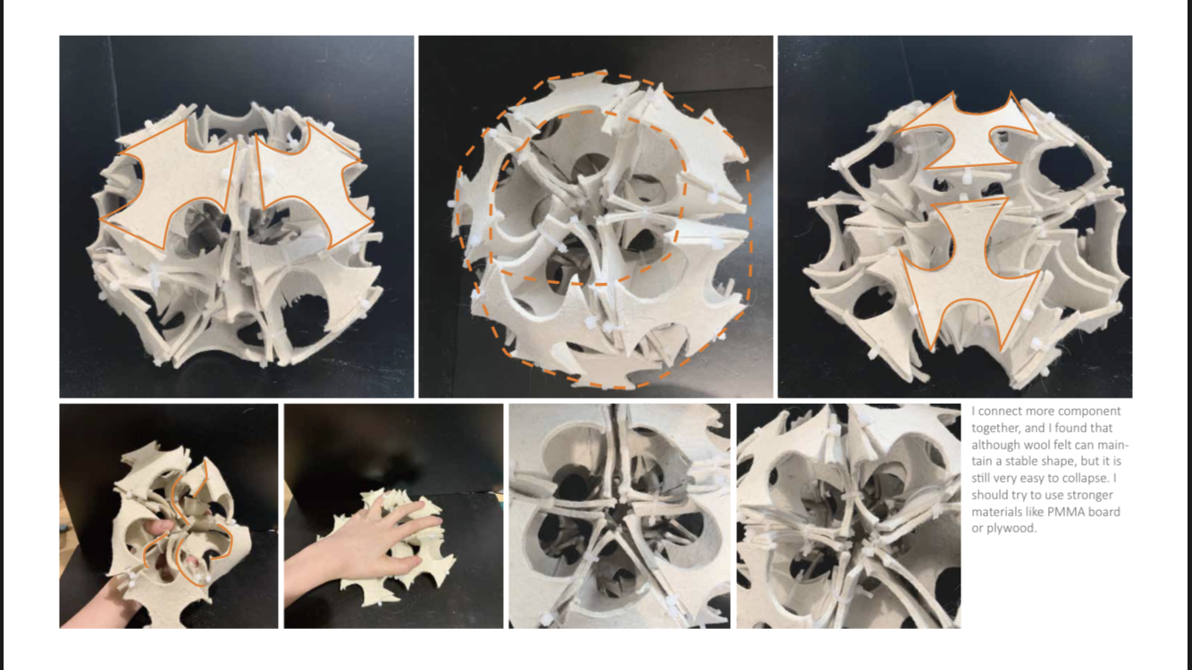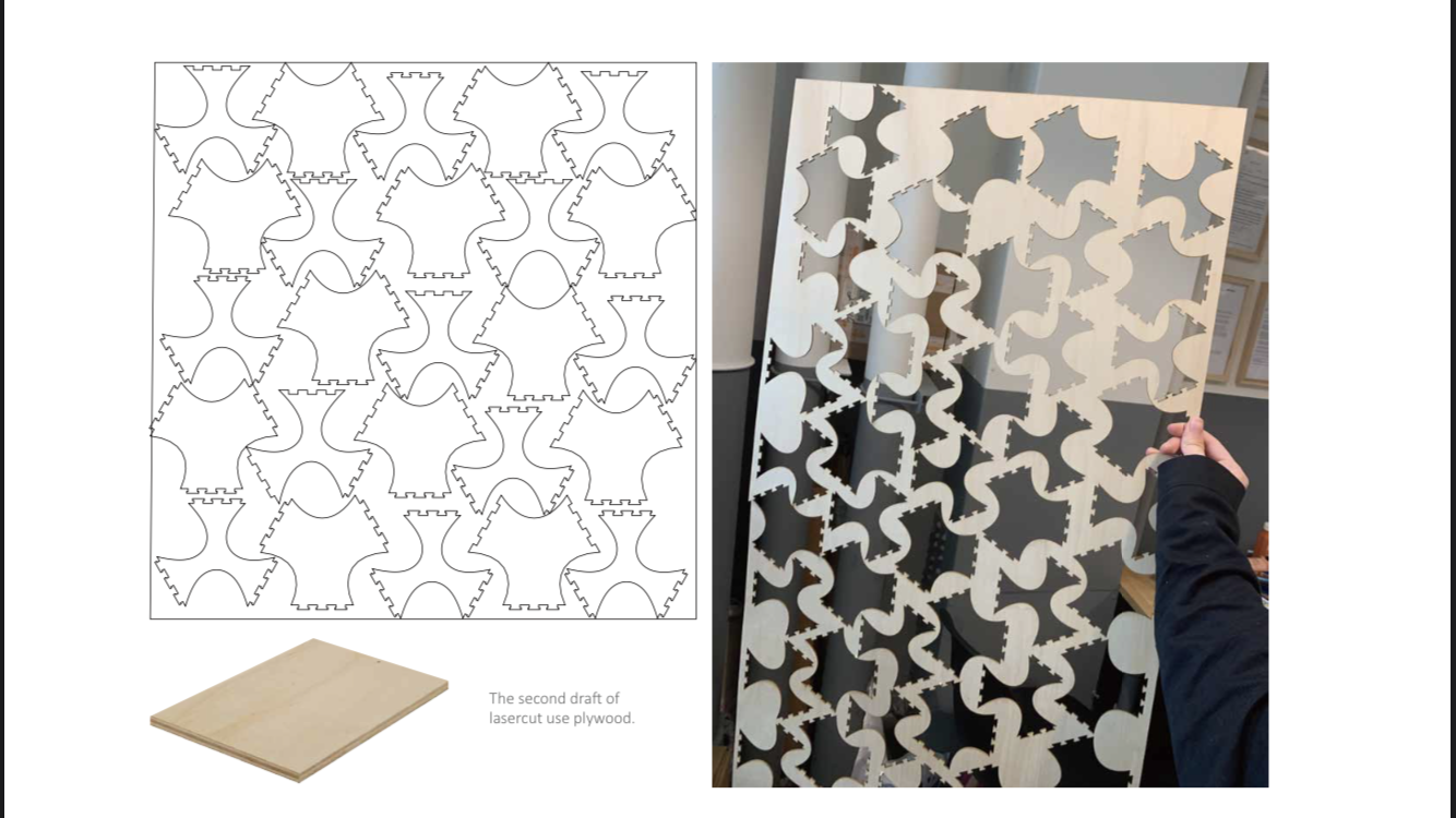 The installation had to be maximum adaptable to any space conditions and create a space filling structure that had to be easily assembled and disassembled. Using laser-cutting machine numerous identical components were produced by the student and assembled manually achieving various spatial configurations.